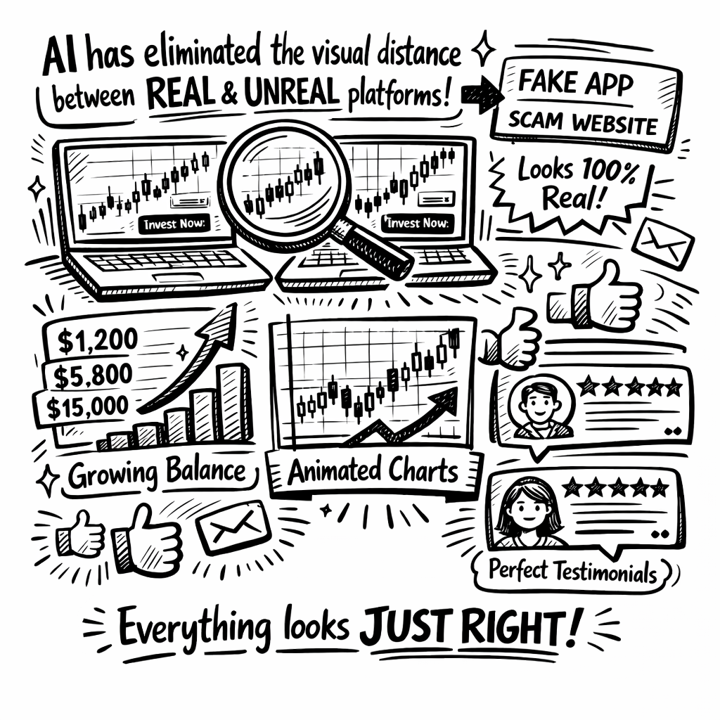 AI has eliminated a visual distance between the real and unreal platforms. Fraudulent applications and websites now appear exactly like a real dealing interface. The charts are animated, balances are increased gradually, and testimonials are positioned at the right place at the right time. There is no sense of out of place, and this reduces suspicion even before the first encounter.