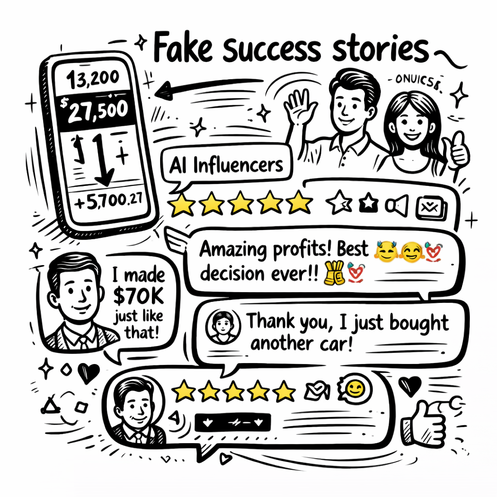 Fraudsters create social proof. They present edited profit screenshots, AI-generated influencers or investors and fake reviews or comments that seem to be organic. Doubt disappears when people find people winning. Social evidence is the last driver which makes the victims invest.