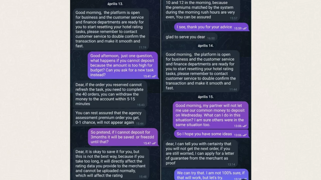 You receive online employment easily with the promise of receiving daily payment. Trust is established by making small initial payments. After being persuaded, they would request you to deposit more money in order to earn more. Once paid the promise is forgotten and you have gone bankrupt.